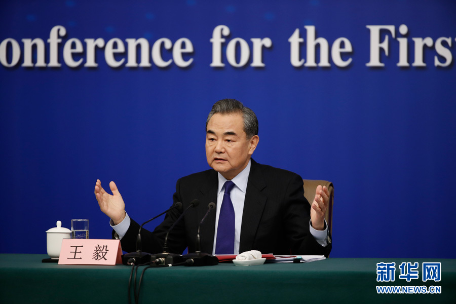十三屆全國(guó)人大一次會(huì)議新聞中心3月8日上午10時(shí)在梅地亞中心多功能廳舉行記者會(huì),邀請(qǐng)外交部部長(zhǎng)王毅就“中國(guó)外交政策和對(duì)外關(guān)系”回答中外記者提問。圖為王毅回答記者提問。 新華網(wǎng)/中國(guó)政府網(wǎng) 陳杰 攝
