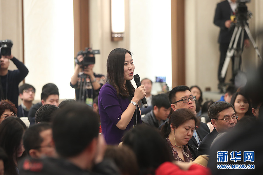 全國政協(xié)十三屆一次會議3月8日15:00在人民大會堂新聞發(fā)布廳舉行第二場記者會,邀請中央財經(jīng)領(lǐng)導(dǎo)小組辦公室副主任楊偉民,中國進出口銀行董事長、黨委書記胡曉煉,農(nóng)業(yè)部原副部長陳曉華,全國工商聯(lián)副主席、清華大學(xué)經(jīng)濟管理學(xué)院院長錢穎一,中國中化集團有限公司黨組書記、董事長寧高寧就推動經(jīng)濟高質(zhì)量發(fā)展回答記者提問。圖為新華社記者提問。新華網(wǎng)/中國政府網(wǎng) 翟子赫 攝