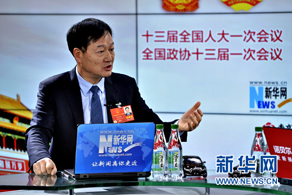 全國(guó)人大代表、牧原食品股份有限公司董事長(zhǎng)秦英林做客新華網(wǎng)2018全國(guó)兩會(huì)特別訪談 新華網(wǎng) 李相博攝