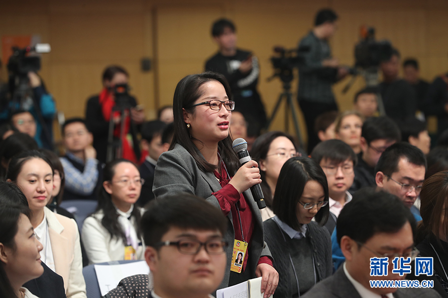 十三屆全國人大一次會議新聞中心3月10日上午10時45分在梅地亞中心多功能廳舉行記者會,邀請科技部部長萬鋼、政策法規與監督司司長賀德方、創新發展司司長許倞就“加快建設創新型國家”相關問題回答中外記者提問。圖為光明日報記者提問。 新華網/中國政府網 陳杰 攝