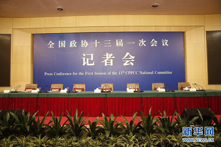 3月10日8時45分,全國政協十三屆一次會議將在梅地亞中心多功能廳舉行記者會,邀請5位全國政協委員就“提高保障和改善民生水平”回答記者提問。圖為記者會現場。