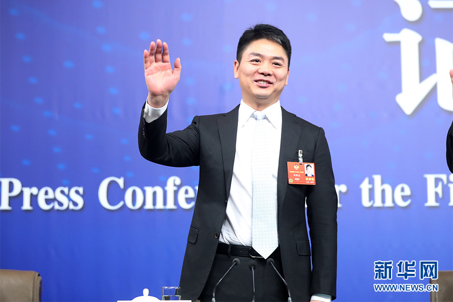 3月10日8時45分,全國政協十三屆一次會議在梅地亞中心多功能廳舉行記者會,邀請5位全國政協委員就“提高保障和改善民生水平”回答記者提問。圖為中國民間商會副會長,北京市工商聯副主席,京東集團董事局主席兼首席執行官劉強東。新華網/中國政府網 翟子赫 攝