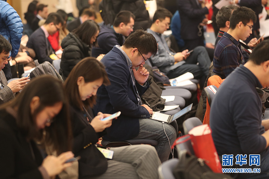 十三屆全國人大一次會議新聞中心3月11日10時在梅地亞中心多功能廳舉行記者會,邀請商務部部長鐘山、副部長兼國際貿易談判副代表王受文、副部長錢克明就“推動形成全面開放新格局?推動商務事業高質量發展”相關問題回答中外記者提問。圖為記者會現場。新華網/中國政府網?陳杰?攝