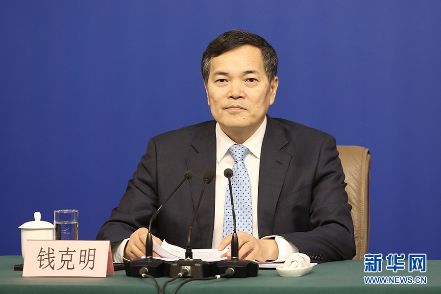 十三屆全國人大一次會議新聞中心3月11日10時在梅地亞中心多功能廳舉行記者會,邀請商務部部長鐘山、副部長兼國際貿易談判副代表王受文、副部長錢克明就“推動形成全面開放新格局 推動商務事業高質量發展”相關問題回答中外記者提問。圖為商務部副部長錢克明。新華網/中國政府網 陳杰 攝