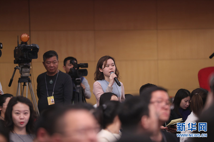 3月12日,十三屆全國(guó)人大一次會(huì)議新聞中心在梅地亞中心多功能廳舉行記者會(huì),邀請(qǐng)十二屆全國(guó)人大內(nèi)司委副主任委員王勝明、財(cái)經(jīng)委副主任委員烏日?qǐng)D、教科文衛(wèi)委副主任委員吳恒、環(huán)資委委員呂彩霞,全國(guó)人大常委會(huì)法工委副主任王超英、副主任許安標(biāo)就“人大立法工作”相關(guān)問(wèn)題回答中外記者提問(wèn)。圖為北京青年報(bào)記者提問(wèn)。新華網(wǎng)/中國(guó)政府網(wǎng) 翟子赫 攝
