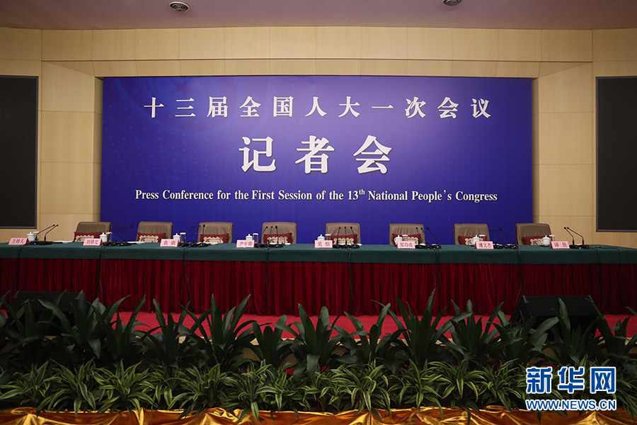 3月12日,十三屆全國人大一次會議新聞中心在梅地亞中心多功能廳舉行記者會,邀請十二屆全國人大財經委副主任委員尹中卿、教科文衛委副主任委員吳恒、環資委副主任委員袁駟、內司委委員鄭功成,全國人大常委會預算工委副主任劉修文、常委會辦公廳秘書局巡視員傅文杰就“人大監督工作”相關問題回答中外記者提問。圖為記者會開始前。新華網/中國政府網?陳杰 攝