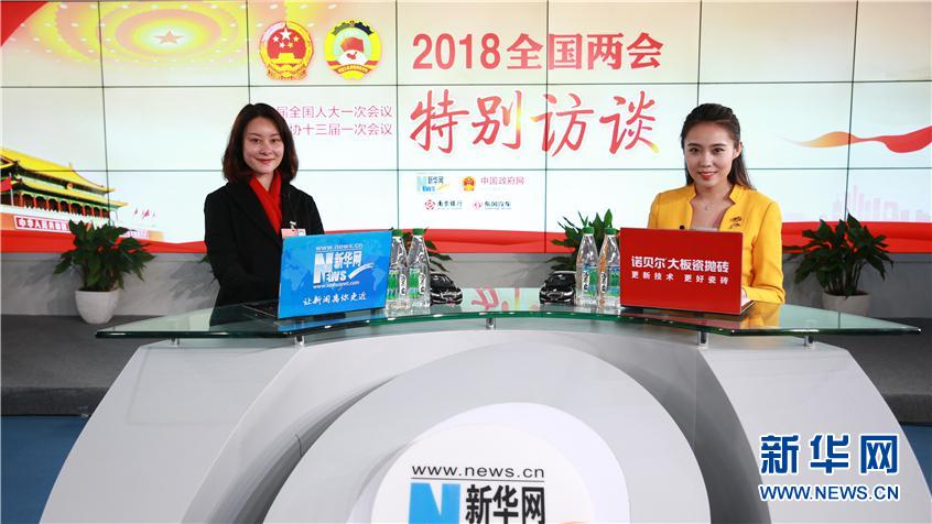 3月13日,全國(guó)人大代表、瀘州老窖股份有限公司酒體設(shè)計(jì)管理中心副主任曾娜(左)做客新華網(wǎng)2018全國(guó)兩會(huì)特別訪談。新華網(wǎng) 楊锘攝
