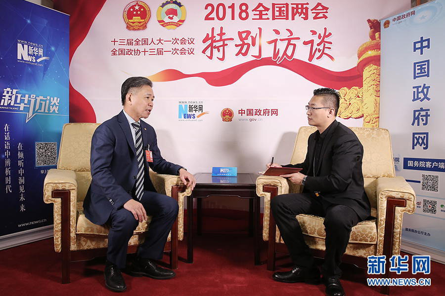王文祥在2018兩會期間接受新華網記者專訪。新華網/中國政府網 陳杰攝