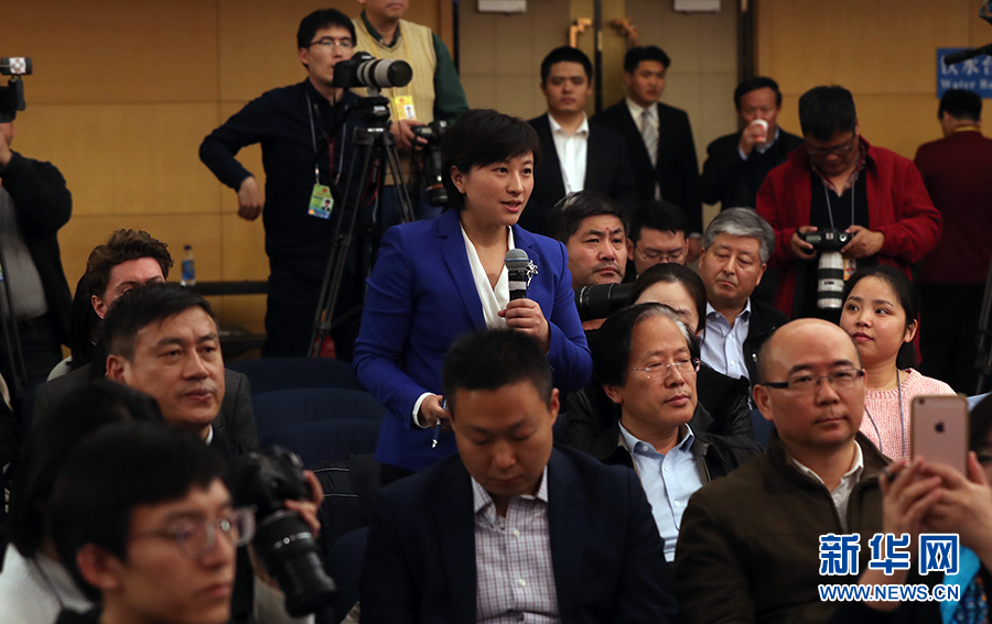 十三屆全國人大一次會議新聞中心于3月17日15時在梅地亞中心多功能廳舉行記者會,邀請環(huán)保部部長李干杰就“打好污染防治攻堅(jiān)戰(zhàn)”相關(guān)問題回答中外記者提問。圖為中國國際電視臺記者提問。新華網(wǎng)/中國政府網(wǎng) 曲植 攝