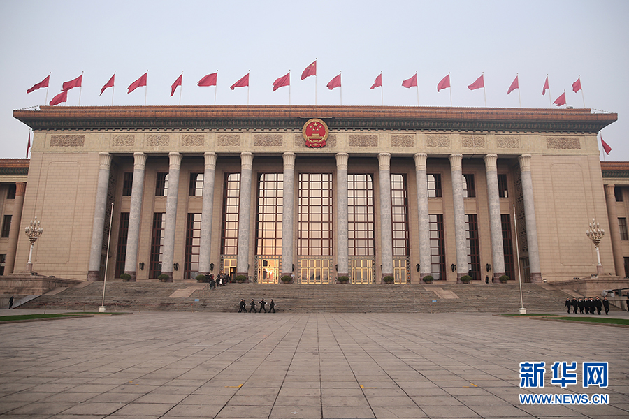 3月19日上午,十三屆全國人大一次會議舉行第七次全體會議。圖為人民大會堂外景。新華網/中國政府網 陳杰 攝