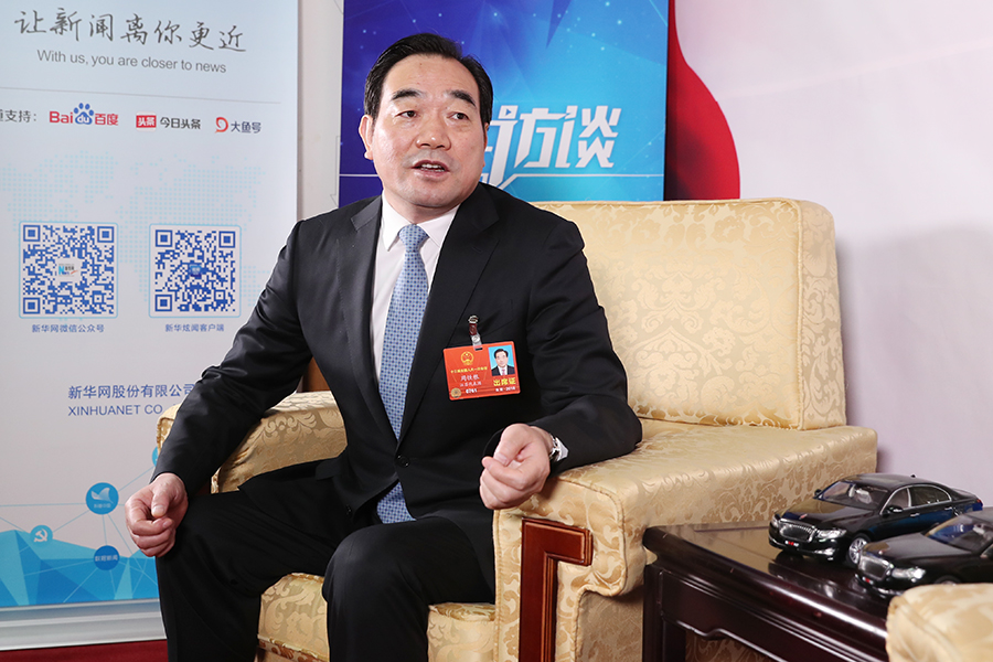 3月20日,全國人大代表、江蘇省徐州市市長周鐵根做客新華網(wǎng)人民大會堂兩會特別訪談間。新華網(wǎng) 郝廣鵬 攝