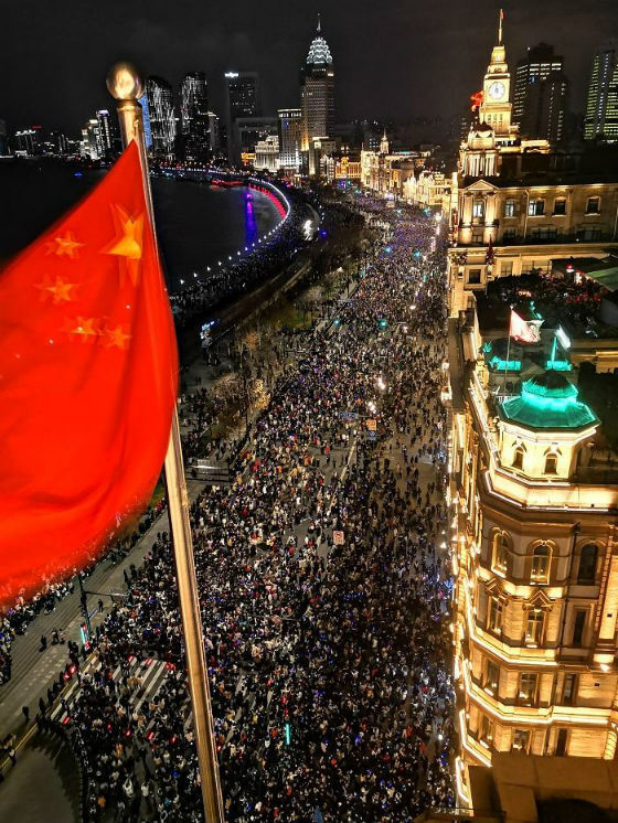 記者從警方了解到,今天的第一波客流高峰出現在晚上18時到20時,江堤滯留人數超過5.3萬人。晚上22時許,外灘江堤開始迎來第二波客流高峰,瞬時客流超過6萬人,此時全天累積客流量已超過37萬人次。據警方介紹,23時許外灘迎來今日客流峰值,預計瞬時滯留人數將超過8萬。