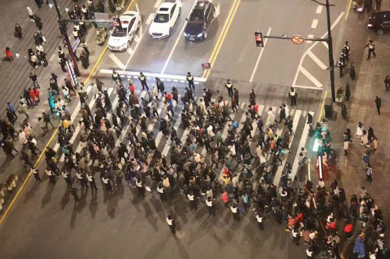晚上23時開始,公安部門對中山東一路進行交通管制,禁止機動車通行:“根據往年經驗,第二波高峰客流會在外灘進行跨年倒數,預計將滯留到24時后。過了零點,游客將集中離開?!睘楸苊馊肆鬟^分擁擠和對沖,警方也從23時開始,在中山東一路和外灘江堤設置“攔截線”,對散場人流進行分隔和固定,分塊、依次放行。屆時,外灘江堤全部采取“只下不上”單向通行措施,開放中山東一路路面,分散客流。