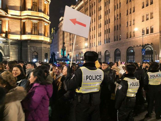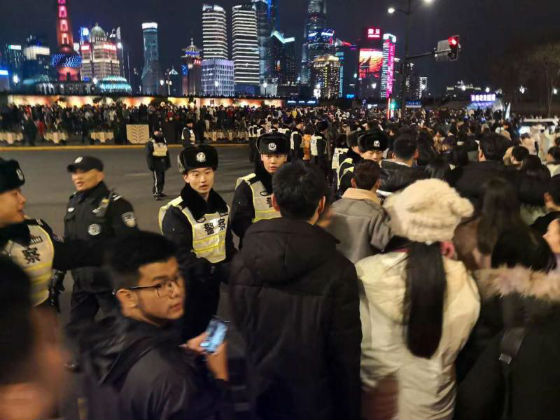 下午15時許,黃浦公安分局民警和增援安保工作的學警和武警共8600余名安保力量就已全部到崗,按照事先部署的安保方案嚴陣以待。此時,南京東路往外灘的游客開始聚集,警方在南京東路四川中路口、南京東路江西中路口實施交通管制,禁止機動車輛通行。民警在現場放置了繞行提示版,提醒車輛繞行河南路,非機動車輛繞行山東中路或山西中路。南京東路外灘、南京東路河南中路路口也沿用了保護行人過馬路安全的“人墻”——紅燈時攔住路口、綠燈時散開在兩邊攔截車流護送人群過街的“開關式”過馬路措施。