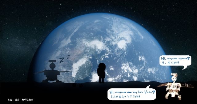 “玉兔二號”駛上月球背面,問候“玉兔”。新華社記者 陸燁 制圖