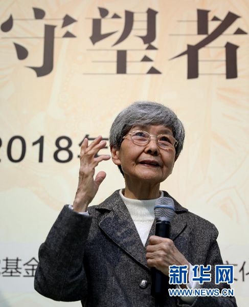 2018年3月30日,敦煌研究院名譽院長樊錦詩在“敦煌文化守望者”全球志愿者派遣計劃首期出征儀式上致辭。 新華社記者 劉穎 攝
