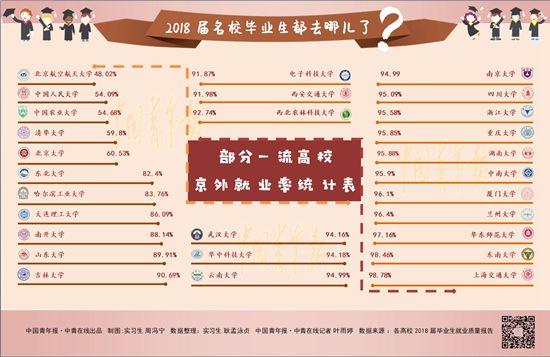 一直以來,“北上廣”是高校畢業生心中的“白月光”,即使沒戶口,去一線城市闖一闖也是不少大學生的共識。然而記者梳理后發現,一流高校畢業生的京外就業率普遍超過50%。