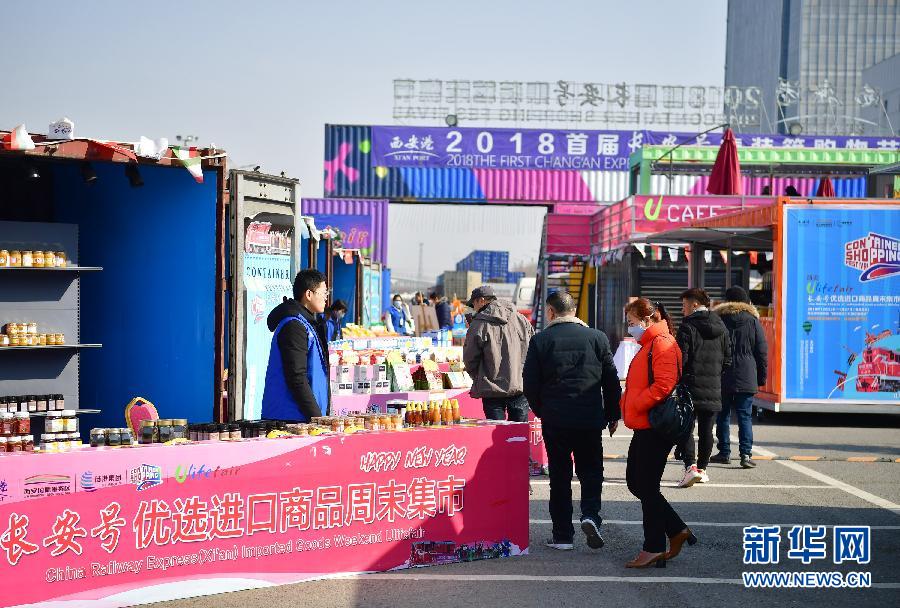 在陜西西安國際港務區,消費者在“長安號”優選進口商品周末集市上參觀(1月19日攝)。新華社記者 邵瑞 攝