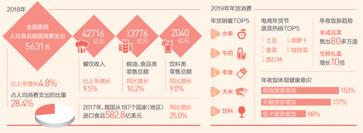 數(shù)據(jù)來源:國家統(tǒng)計(jì)局、海關(guān)總署、京東《2019年中國年貨消費(fèi)報(bào)告》、天貓《中國人年夜飯消費(fèi)報(bào)告》