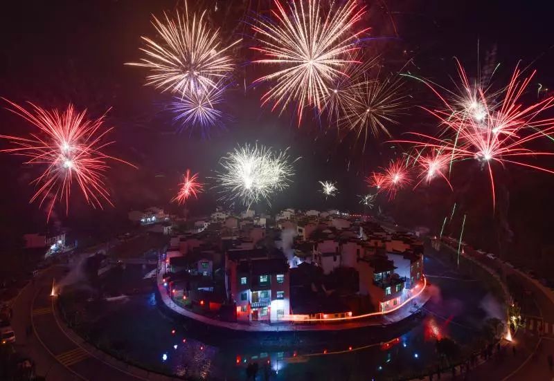 2019-01-18,江西省上饒市婺源縣。菊徑村村民舞板凳龍迎新春,煙花點(diǎn)亮了山村。作者:敦煌