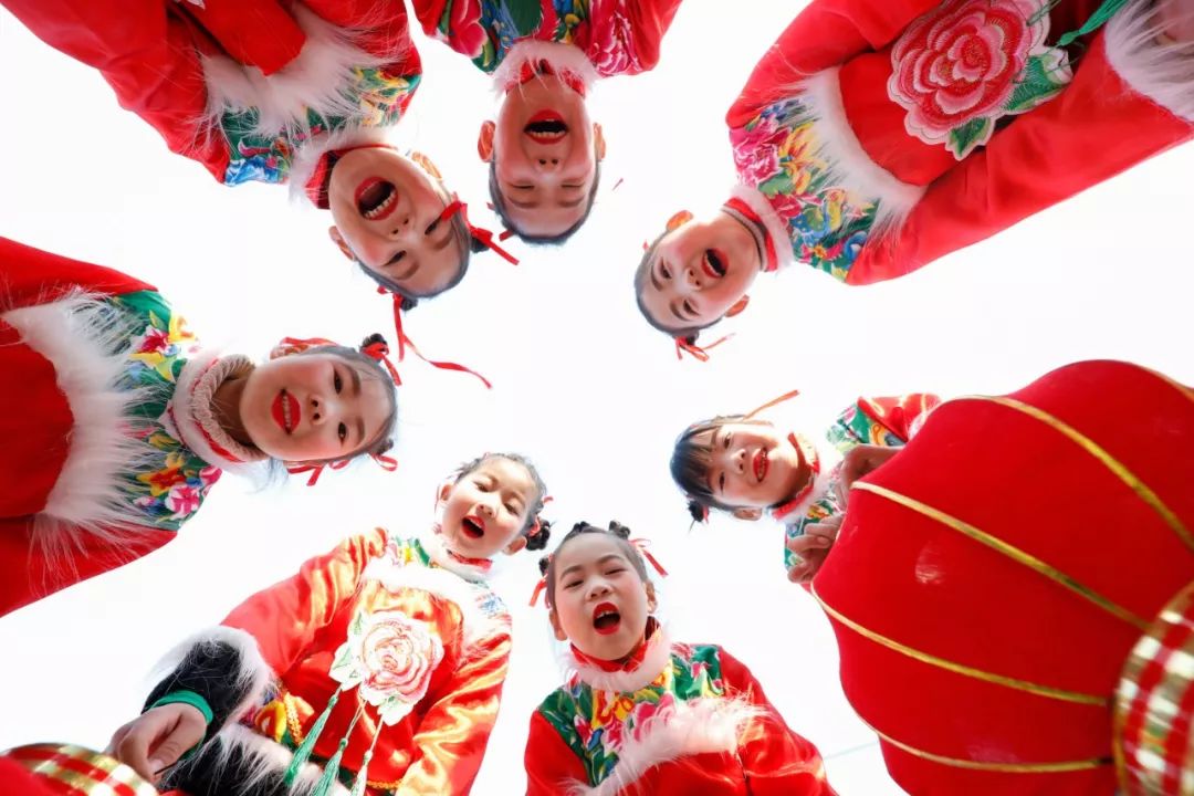 2019-01-22,江蘇省淮安市盱眙縣。小朋友們身著喜慶服飾,手提大紅燈籠,歡慶即將到來(lái)的新春佳節(jié)。作者:2009