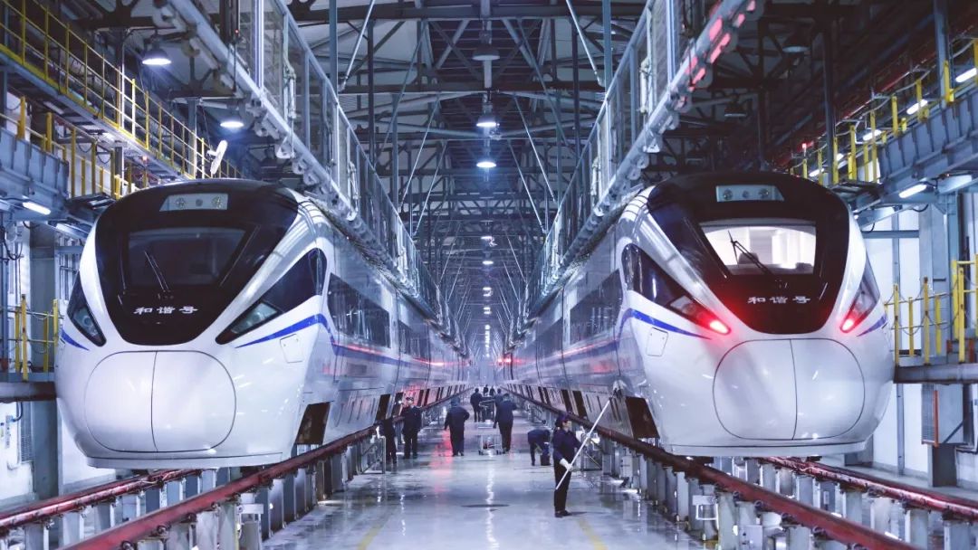 2019-01-08,福建福州。凌晨?jī)牲c(diǎn),在福州南動(dòng)車所內(nèi),機(jī)械師和保潔員們還在忙著檢修清潔動(dòng)車組,確保第二天準(zhǔn)時(shí)上線。作者:嗯叮