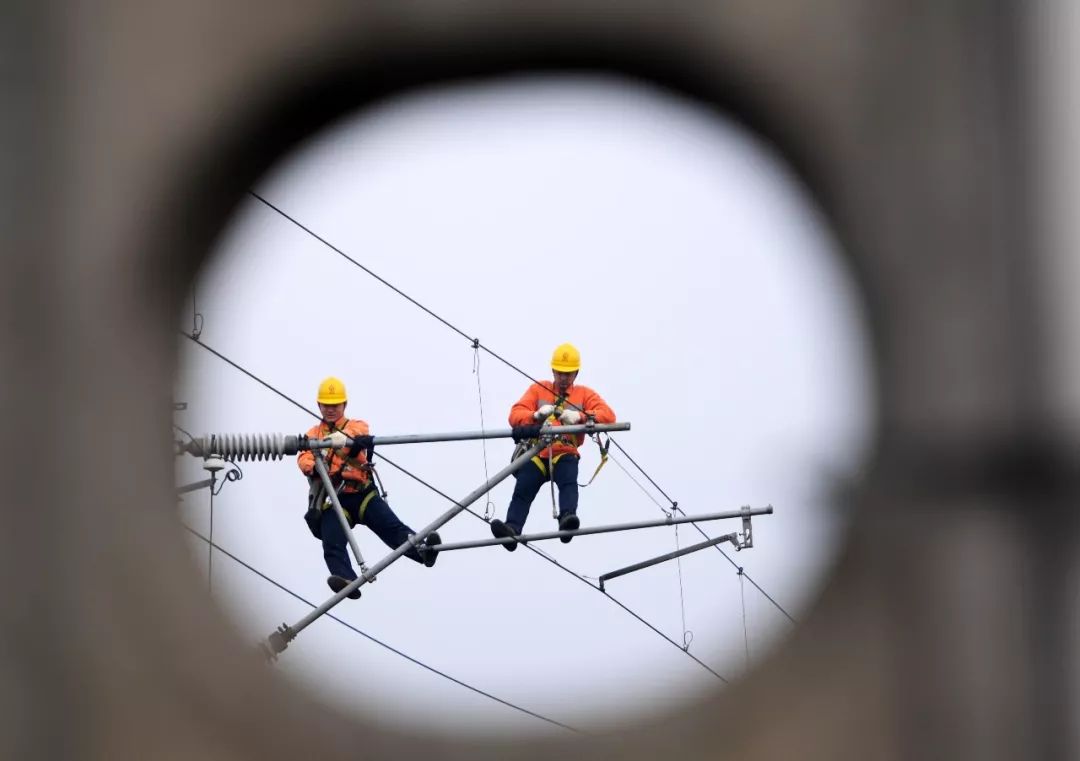 2019-02-06,江西九江。中國(guó)鐵路南昌局集團(tuán)有限公司南昌供電段的職工在武九鐵路瑞昌區(qū)段檢修保養(yǎng)接觸網(wǎng)設(shè)備,以迎接節(jié)后鐵路運(yùn)輸高峰。作者:江山如畫