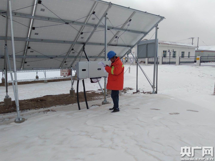青海送變電工程公司員工春節(jié)期間巡視瑪多4..4兆瓦光伏扶貧電站(央廣網(wǎng)發(fā) 熊增亮 攝)