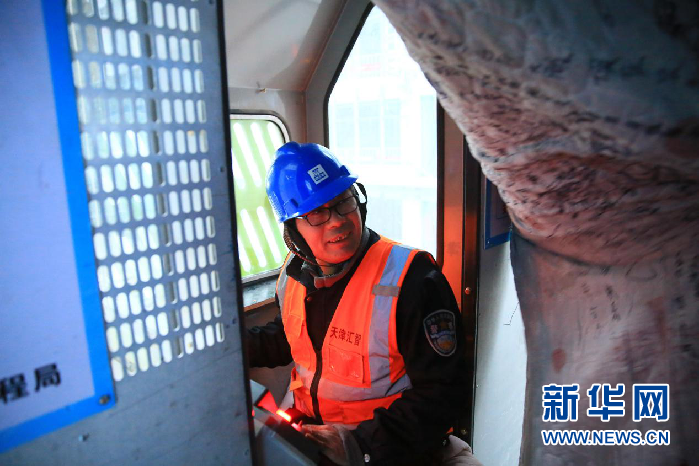 6月30日竣工后,這里將是運(yùn)控中心。在這個目前極為簡陋的貨運(yùn)電梯里,工友們戲稱“幕后功臣”的55歲電梯工袁勇,在布簾后手動控制每一次電梯的平安起降。“春節(jié)不停工,各種建筑材料都要運(yùn)進(jìn)來,我的工作就是替他們按電梯按鈕。平均每天需要操作800-1000次吧,肯定是不能回廊坊過年了。”