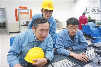 新招聘的高職生跟著中國石化技能大師孫同根學習操作技巧。陳康 攝