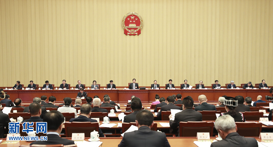主席團(tuán)常務(wù)主席王晨、曹建明、張春賢、沈躍躍、吉炳軒、艾力更·依明巴海、萬鄂湘、陳竺、王東明、白瑪赤林、丁仲禮、郝明金、蔡達(dá)峰、武維華、楊振武出席會議。