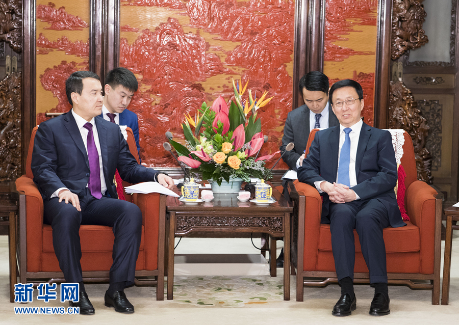 韓正表示,中哈是友好鄰邦和全面戰(zhàn)略伙伴。在習(xí)近平主席和納扎爾巴耶夫總統(tǒng)的戰(zhàn)略引領(lǐng)和親自推動下,中哈關(guān)系保持高水平運(yùn)行,已成為國與國之間和睦相處、互利共贏的典范。雙方高層交往密切,政治互信不斷增強(qiáng),共建“一帶一路”成果豐碩。希望雙方進(jìn)一步發(fā)揮好中哈合作委員會重要作用,加強(qiáng)發(fā)展戰(zhàn)略對接,推進(jìn)經(jīng)貿(mào)、投資、海關(guān)、金融等領(lǐng)域務(wù)實(shí)合作,支持兩國企業(yè)按商業(yè)化市場化原則加強(qiáng)項(xiàng)目合作,推動中哈合作不斷取得新進(jìn)展。