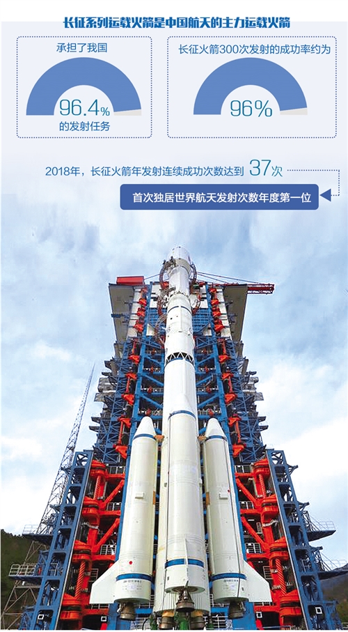 數據顯示,長征系列運載火箭實現首個100次發射用時37年,出現在2007年6月1日長征三號甲運載火箭發射鑫諾三號衛星,年均發射2.7次;第二個100次發射用時7年多,出現在2014年12月7日長征四號乙運載火箭成功發射中巴資源衛星04星,年均發射13.3次;第三個100次發射僅用時4年多,年均發射23.5次。