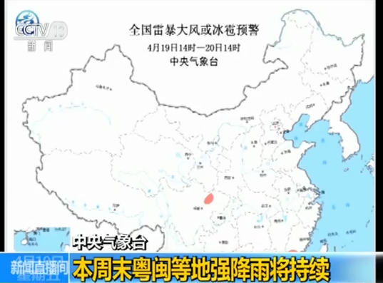 中央氣象臺監測顯示,昨天廣東、廣西、福建、江西、湖南等地部分地區出現暴雨或大暴雨;廣東中部和珠江口附近還伴有8~10級雷暴大風,局地出現冰雹。