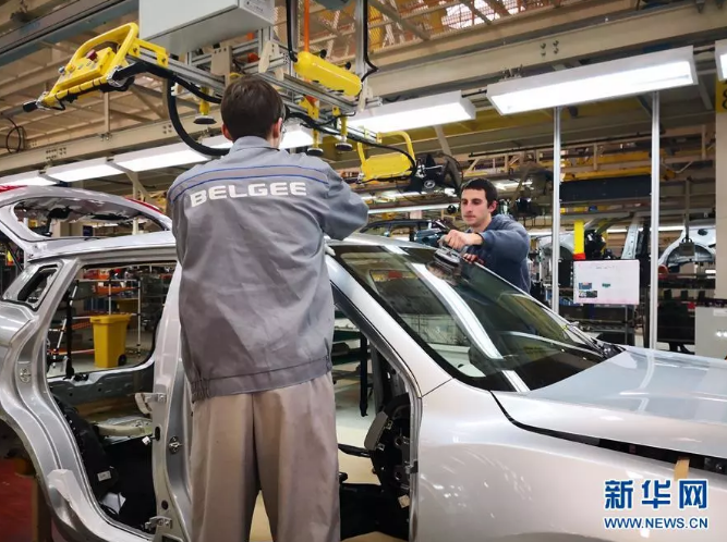 位于白俄羅斯的吉利全散件汽車(chē)制造廠拍攝的總裝車(chē)間。新華社記者 張若玄 攝