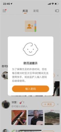 一個(gè)短視頻平臺(tái)上的防沉迷提示。
