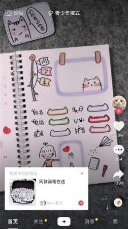 記者在用青少年模式瀏覽抖音所推送的視頻時(shí)看到,不少視頻內(nèi)容上傳者在展示繪畫(huà)、書(shū)法等技巧時(shí),左下角總會(huì)“恰到好處”地彈出視頻中所使用的工具購(gòu)買(mǎi)鏈接。
