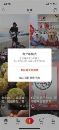 4月24日凌晨,記者登錄快手短視頻平臺(tái)發(fā)現(xiàn),確實(shí)因?yàn)椤胺莱撩浴逼陂g無(wú)法登錄平臺(tái),需要監(jiān)護(hù)人輸入密碼后才能繼續(xù)使用。記者隨即以“青少年”模式登錄抖音、火山時(shí),同樣顯示無(wú)法登錄。