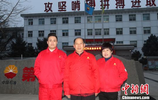 長(zhǎng)慶油田三代人扎根西北,共同見證著油田的數(shù)載發(fā)展。(中:芮執(zhí)甲 左:藺鼎讀 右:芮軍紅) 張鵬飛 攝