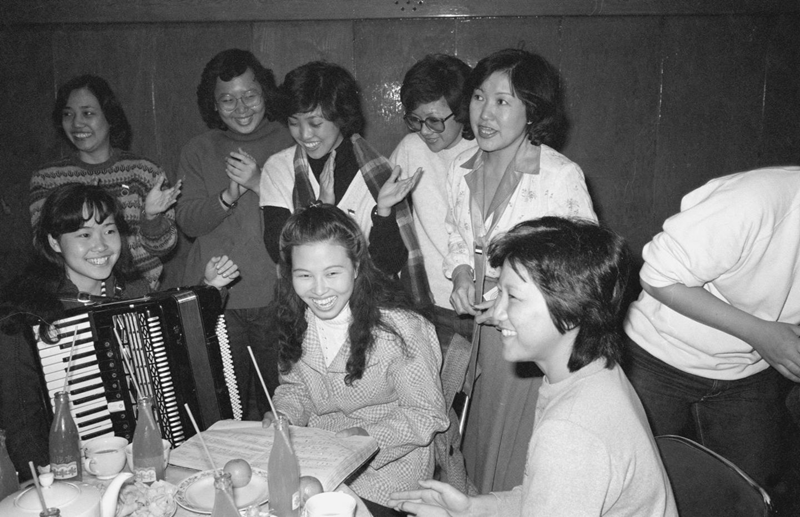 中、新兩國(guó)演員聯(lián)歡? 1983年3月19日,新加坡佳音合唱團(tuán)的演員同中國(guó)歌劇演員在北京民族文化宮舉行聯(lián)歡。這是兩國(guó)演員在一起共唱中國(guó)歌曲《年輕的朋友來相會(huì)》。 新華社記者楊慎和攝