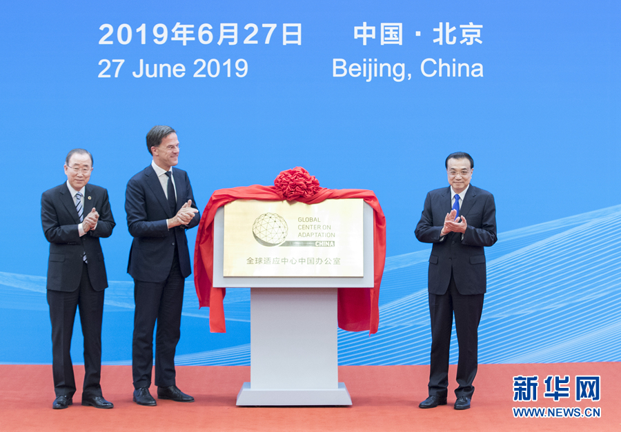 6月27日,國務(wù)院總理李克強(qiáng)在北京人民大會堂同荷蘭首相呂特、聯(lián)合國前秘書長潘基文共同出席全球適應(yīng)中心中國辦公室揭牌儀式。新華社記者 王曄 攝