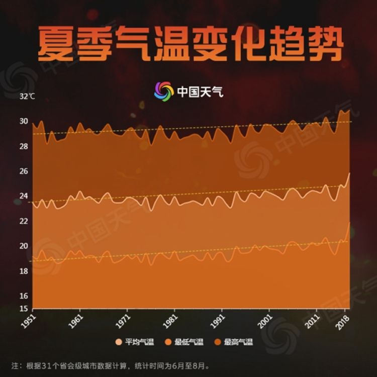 夏天真的越來越熱了嗎?中國天氣網(wǎng)統(tǒng)計了1951年以來全國夏季年平均氣溫發(fā)現(xiàn),無論平均氣溫、最高氣溫還是最低氣溫均出現(xiàn)上升趨勢,越來越熱并非錯覺。