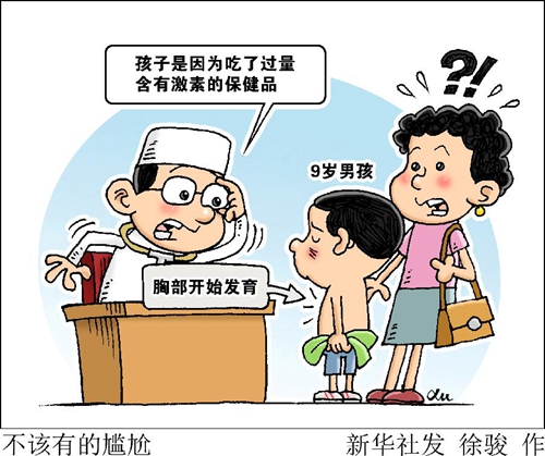 9歲的成都男孩浩浩,遇到了這個年齡和性別不該有的尷尬,他的胸部竟然開始發育了。經醫生診斷,孩子是因為吃了過量含有激素的保健品。類似浩浩這樣因為服用保健品帶來身體損傷的例子并不少見。