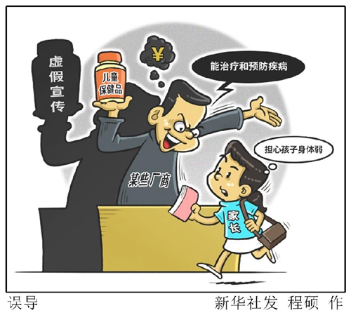 “用于治療缺鋅引起的營養不良、兒童生長發育遲緩”“用于預防和治療因維生素和礦物質缺乏引起的各種疾病”“用于治療因缺鈣引起的疾病”……這樣宣稱有治療或預防作用的兒童保健品比比皆是。一些家長告訴記者,總是擔心孩子身體弱,看到這樣的廣告就想試試。