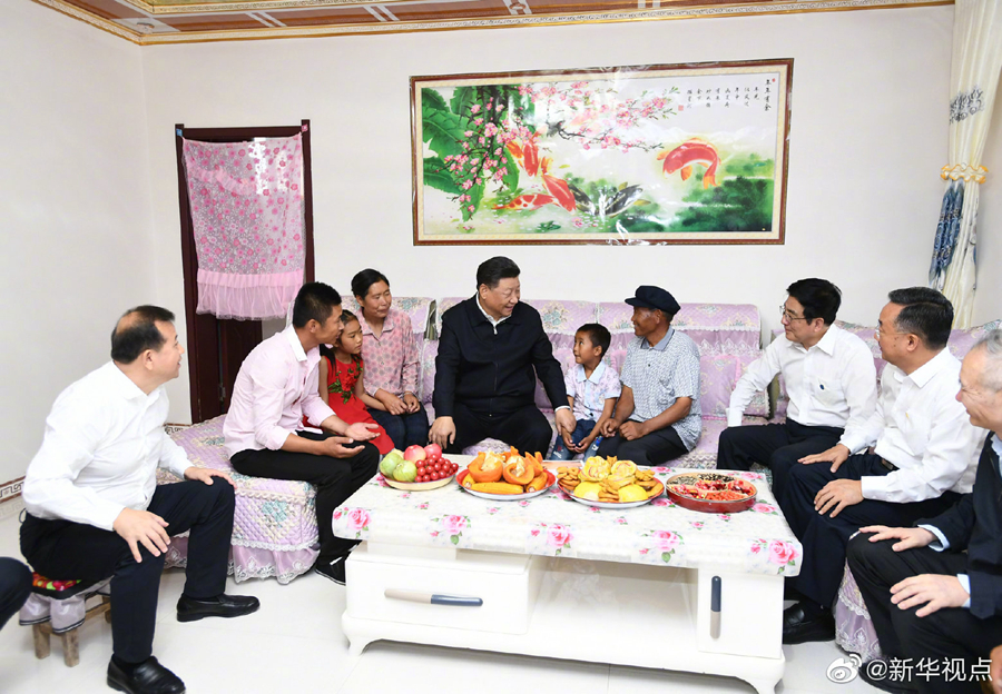 富民新村地處甘肅省古浪縣黃花灘生態移民區,習近平總書記21日上午來到這里,看望從山區生態移民易地扶貧搬遷的鄉親們。他走進村民李應川家,小院潔凈、住房敞亮、廚衛設施齊全。在客廳坐下來,李老漢拿出一張搬遷前的老照片給總書記看,曾經居住的土坯房同窗明幾凈的新居有天壤之別。習近平對這里群眾生產生活條件發生的巨大變化感到十分欣慰,李老漢連連感嘆現在日子太幸福了。習近平強調,你們高興我們也高興,共產黨就是為人民服務的,就是為老百姓辦事的,讓老百姓生活更幸福就是共產黨的事業。(文字記者:張曉松、朱基釵 攝影記者:鞠鵬、謝環馳)