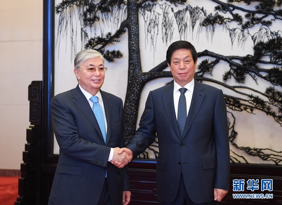 9月12日,全國人大常委會委員長栗戰(zhàn)書在北京人民大會堂會見哈薩克斯坦總統(tǒng)托卡耶夫。新華社記者 申宏 攝