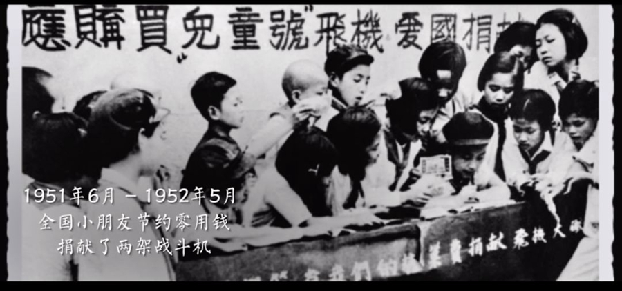 1951年6月,全國少先隊員通過搜集廢銅、廢鋼鐵,打柴割草,飼養小牲畜等,用自己的勞動成果和零用錢,支持購買飛機,派出代表參加赴朝慰問團,還給志愿軍寫信、慰問軍烈屬。