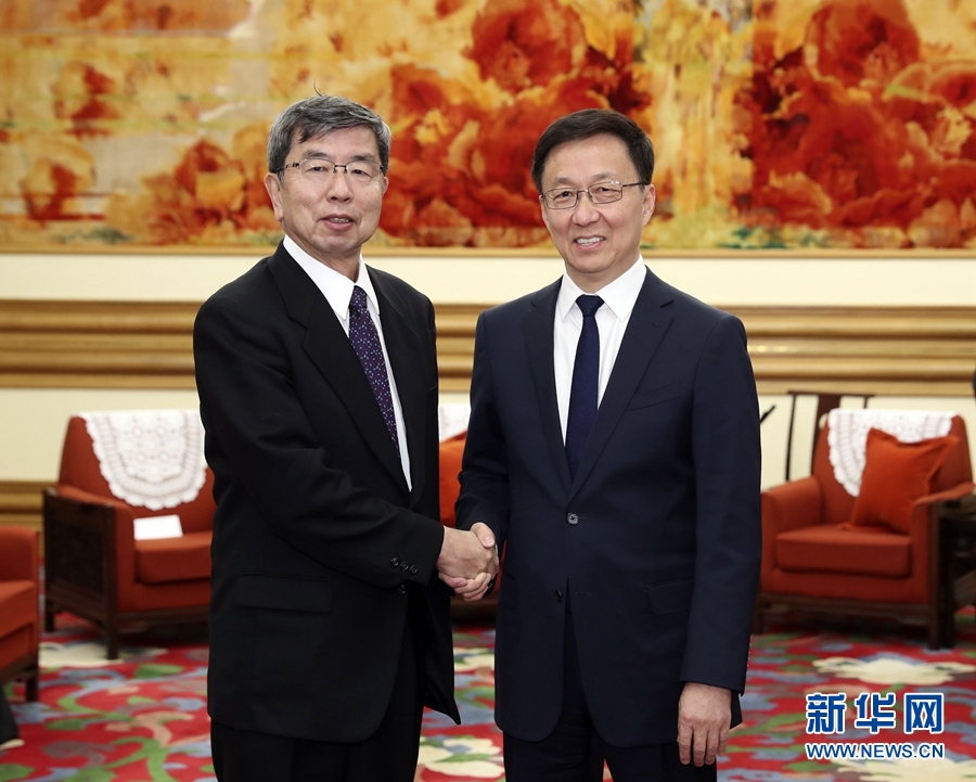12月3日,中共中央政治局常委、國務院副總理韓正在北京中南海會見亞洲開發銀行行長中尾武彥。新華社記者 丁林 攝