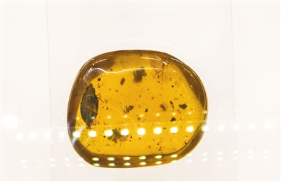 12月23日,中關村圖書大廈石探記博物科學館,展出琥珀內發現的新物種——齒胸波眼甲。新京報記者 陶冉 攝