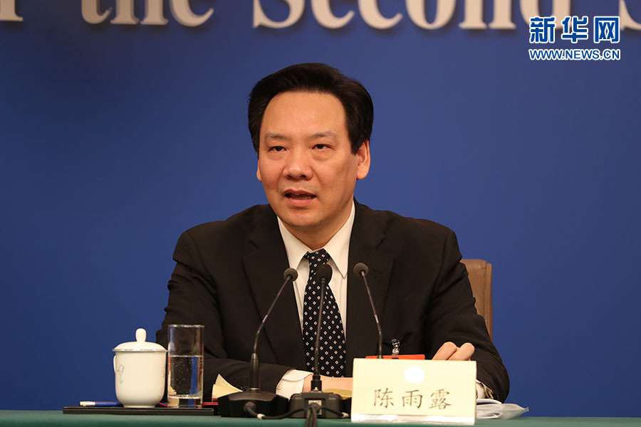 全國政協十三屆二次會議3月5日下午在梅地亞兩會新聞中心舉行記者會,邀請5位全國政協委員就“打贏防范化解重大風險、精準脫貧、污染防治三大攻堅戰”回答記者提問。圖為全國政協經濟委員會副主任(經濟界)、中國人民銀行副行長陳雨露。新華網/中國政府網 陳杰 攝